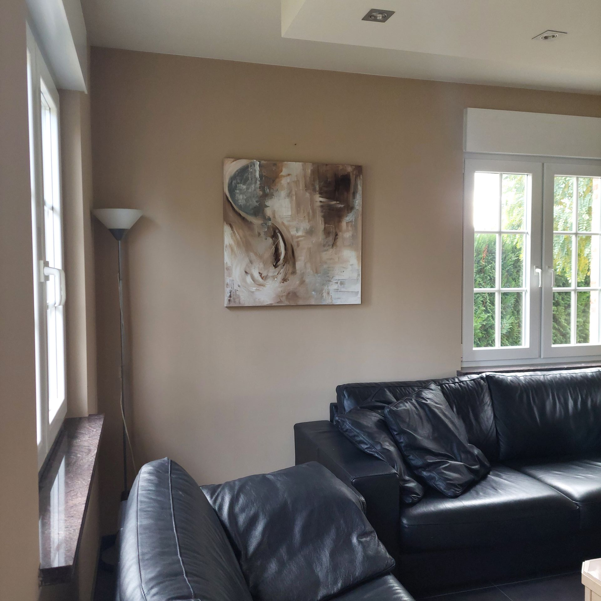 Ik heb een tijdje geleden contact opgenomen met Sanne en zij is na een paar dagen bij ons komen kijken en opmeten om wat tips te geven qua kleuren, vormen en de grootte van het schilderij.