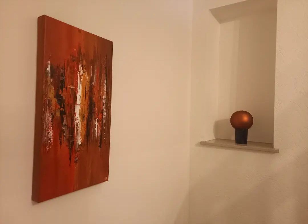 Na een aantal weken heeft ze ons schilderij (een echt talentvol kunstwerk) zelf opgehangen.